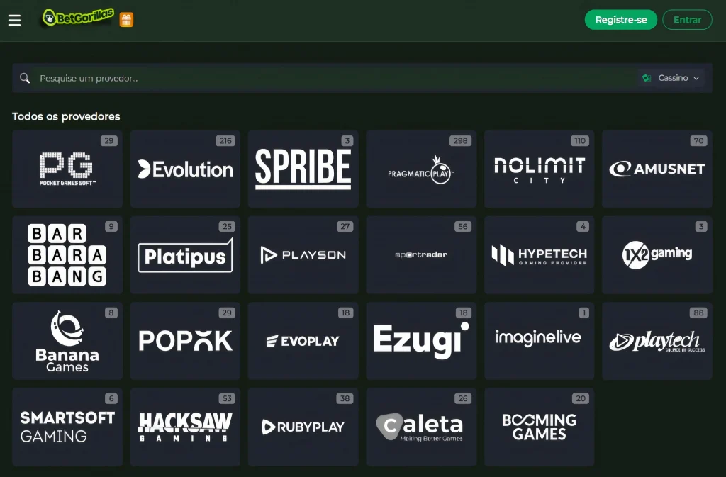 Os fornecedores formam a cara de um cassino, e a Betgorillas concentra-se nos estúdios mais populares.